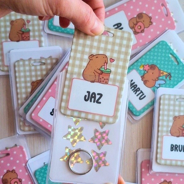 • TAG PLÁSTICO PERSONALIZADO CON EL NOMBRE DE CADA INVITADO ESTAMPADO DE AMBOS LADOS (la cara frontal con nombre, el dorso acorde a la temática)